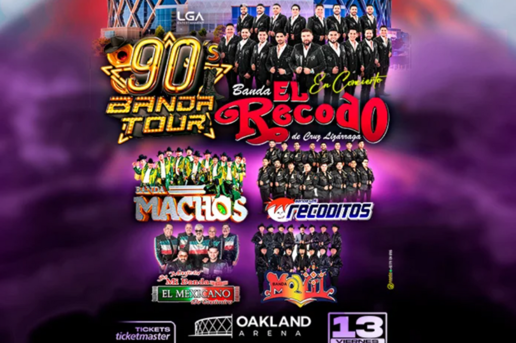 Get ready to relive the best hits of the ’90s with the 90’s Banda Tour, featuring some of the biggest names in banda music: Banda El Recodo, Banda Machos, Banda Los Recoditos, Mi Banda El Mexicano, and Banda Maguey. This unforgettable night will bring high-energy performances, dancing, and nostalgia for fans of all ages. Join us at the Oakland Arena on February 13, 2026 for an experience you won’t want to miss.