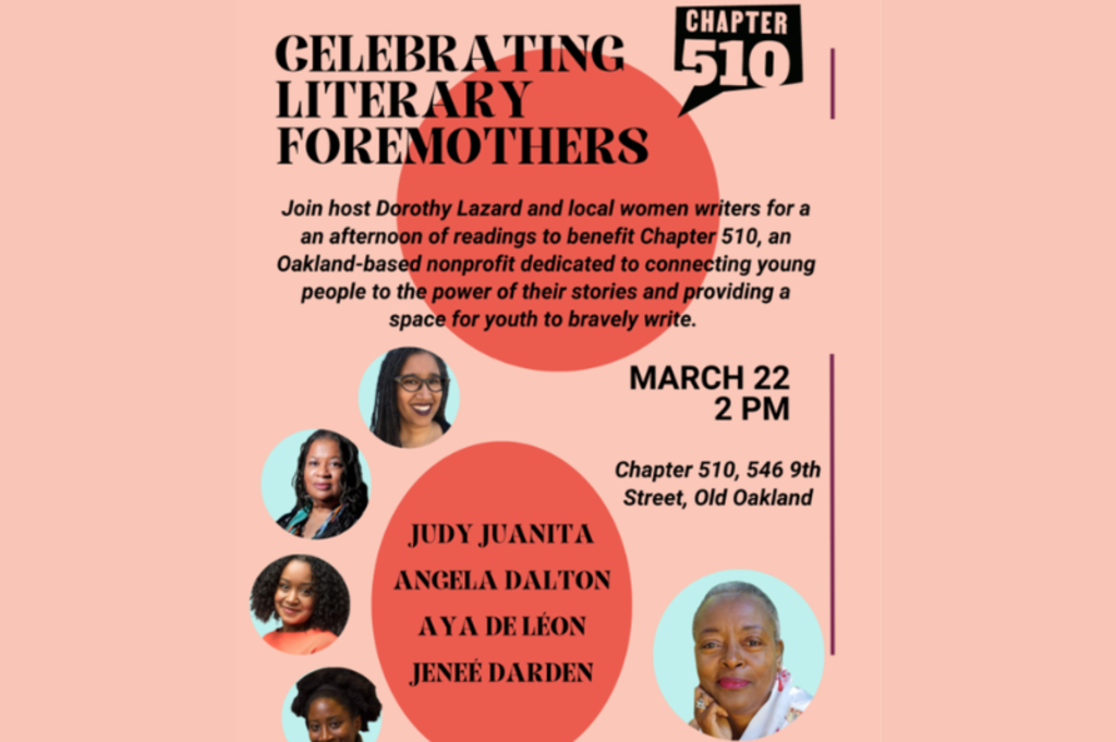 Guests at this free event will have the opportunity to learn about Chapter 510's free and low-cost writing and publishing programs for Black, brown, and queer Oakland youth, and to support this work with a donation. Thank you for joining us for this truly special gathering of writers!