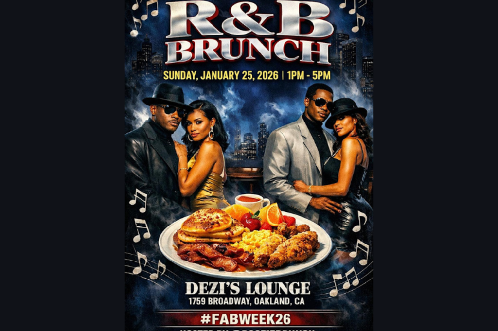 FAB WEEK 26 DAY #7: Sunday Brunch at Dezi's Lounge Upstairs in Downtown Oakland. Special Celebrity Guests will be in attendance. Suggested booth purchase for spectacular views of the FOX Theatre or overlooking Broadway. TVs Indoors/Outdoors, Bottles on deck, Mimosas, Great Food, and Entertainment. Chef extraordinaire TBA. Support a great cause and meet us there for brunch, comedy, playoff games, music entertainment & MIMOSAS!